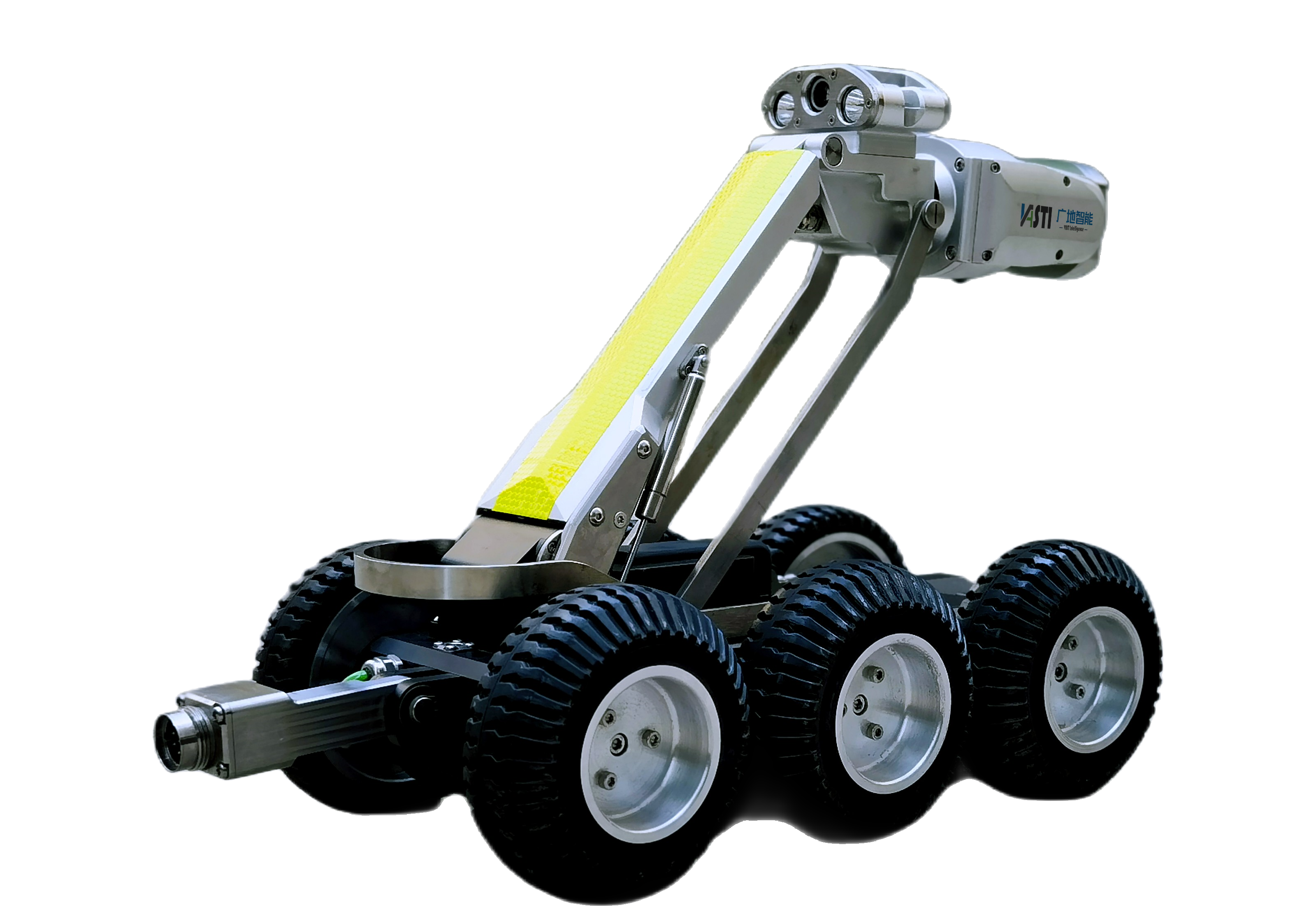 坚固的VT-200多功能轮式机器人,深刻体会到外业检测工程师的需求,采用新颖的7轮驱动设计,大扭矩驱动电机,能够轻松通行复杂淤积的管道,大大提升检测工程的效率。坚固型机体,采用双密封式结构,弹簧减震设计,努力打造成一款任劳任怨,坚固可靠的检测机器人,让工程师充分信任的伙伴。